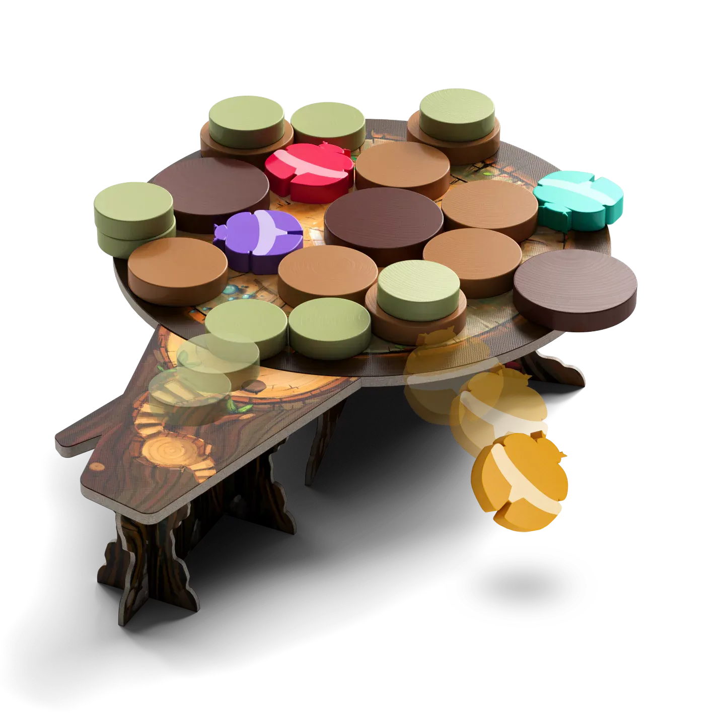 In Kabuto Sumo, you are one of the contending beetles that is battling for supremacy in the ring and your place in the pantheon of legendary wrestlers. The gameplay of Kabuto Sumo resembles the coin-pusher arcade games in which you strategically drop quarters and anxiously anticipate coins cascading off the platform. This game features a similar experience, with you trying to strategically slide pieces onto the board and push the other players out of the ring. It’s an exciting combination of dexterity, strategy, and luck.