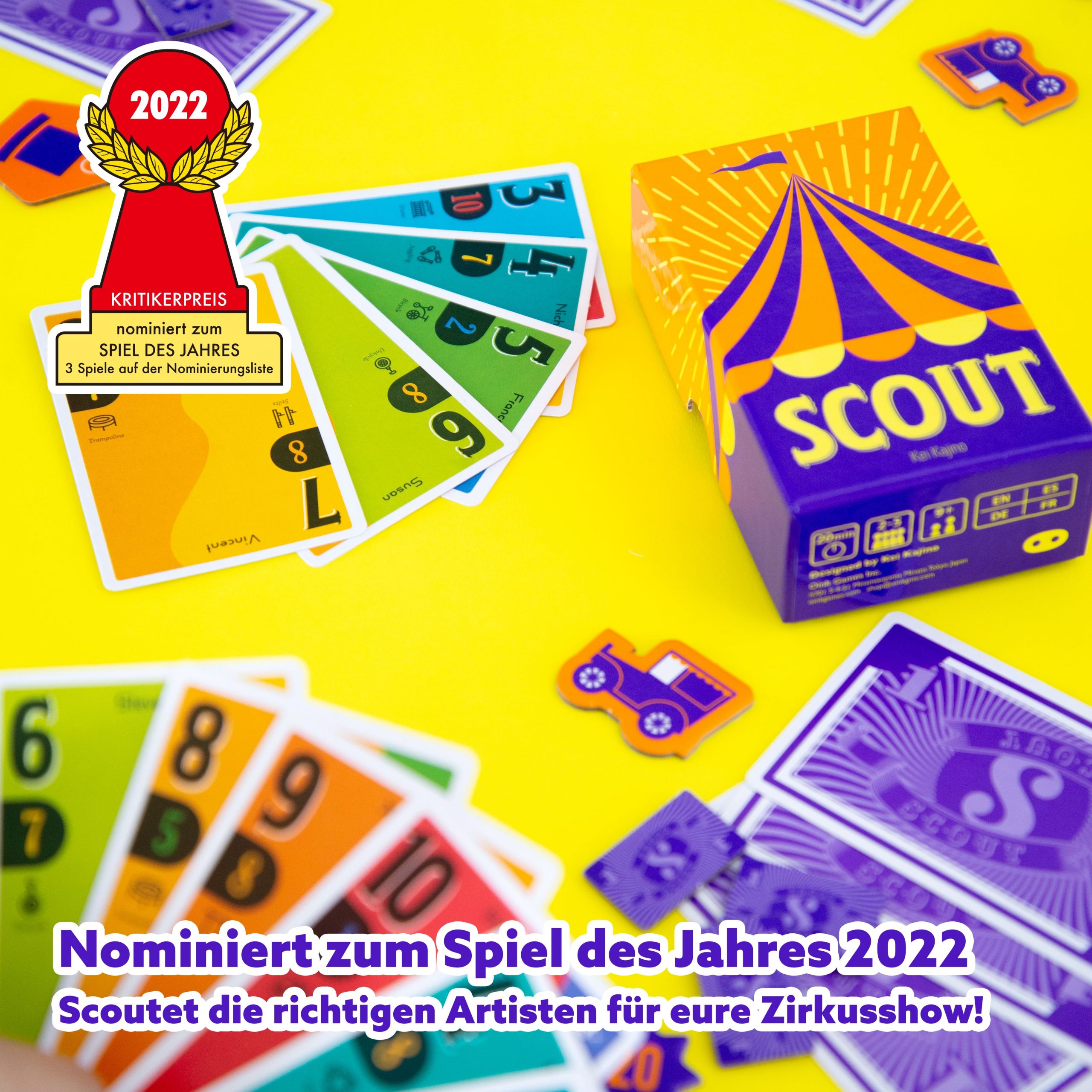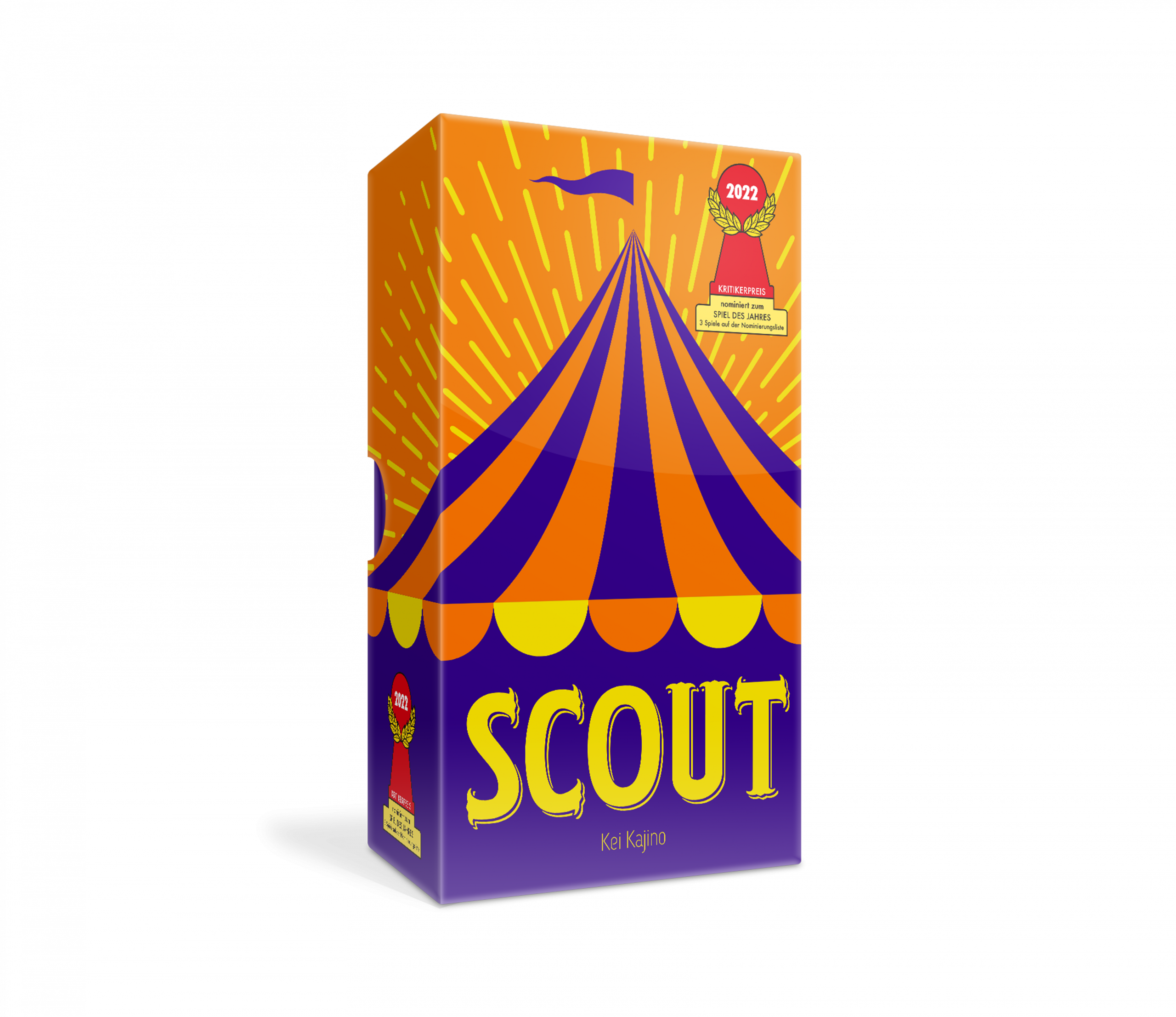 SCOUT is a ladder-climbing game in which cards have two potential values, players may not rearrange their hand of cards, and players may pass their turn to take a card from the current high set of cards into their hand.